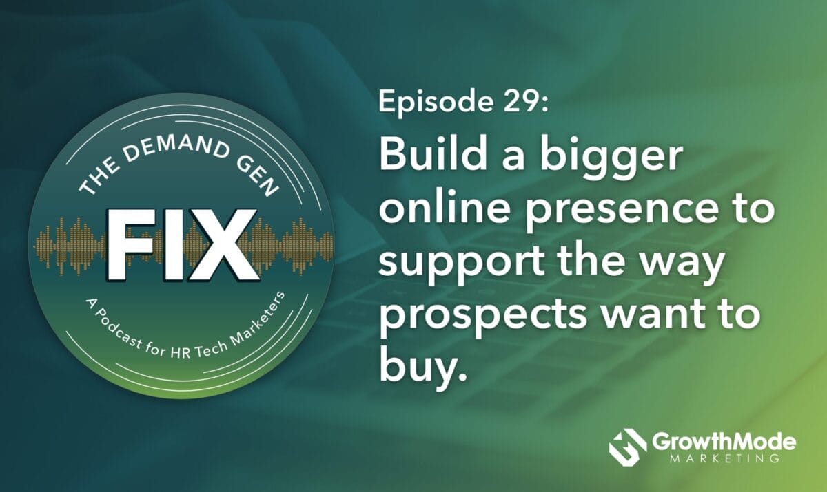 Hey everybody, it’s Jenni from GrowthMode Marketing. You are listening to The Demand Gen Fix the podcast where our team of GrowthModers and our guests discuss the ins and outs of demand generation and why we believe it’s the key to long-term sustainable growth, especially in the HR tech industry.